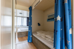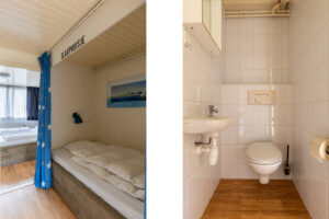gelegen in Groot-Valkenisse am Ortsrand von Zoutelande und verfügt auf 57qm über 2 Schlafzimmer (1 Doppelbett, 2 Einzelbetten) und ein „Slaaphuisje“ (Einzelbett 1,20×200), 1 Bad mit Dusche, Waschtisch und Toilette (EG), 1 separate Toilette (OG), 1 Wohn-/Esszimmer mit offener Küche, 1 Wirtschafts-/Heizungsraum mit Waschmaschine und kleinem Gefrierschrank (EG), großzügige Südterrasse zur Dünenseite mit Terrassenmöbeln, sowie eigenem PKW-Stellplatz. Im Garten der der Anlage befinden sich Spielmöglichkeiten für Kinder.