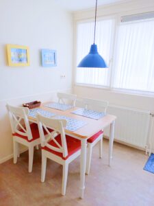 Das Ferienhaus befindet sich in der kleinen Ferienanlage „De Woeste Hoeve“, gelegen in Groot-Valkenisse, am Ortsrand von Zoutelande und verfügt auf 67 m2 über 2 Schlafzimmer (1 Doppelbett, 2 Einzelbetten), 2 separate Toiletten, 1 Dusche, eine voll ausgestattete Einbauchkküche, inkl. Waschmaschine, 1 Wohn-/Eßzimmer, Kabel TV, Süd-Terrasse mit Aussicht auf die Dünen, einen eigenen Parkplatz (für 1 PKW!), Kinderbett-und -stuhl sowie Terrassenmöbel. Im Garten befinden sich Spielmöglichkeiten für Kinder.
